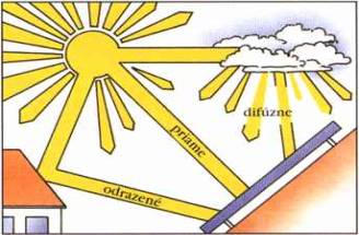 dopadá priamo na plochu. Účinnosť slnečného kolektoru je závislá na uhle dopadu
