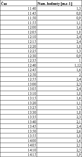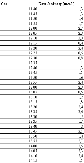 5.2.1. Postup a výsledky merania rýchlosti vetra